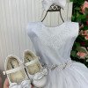 TECIDO 100% POLIESTERFORRO CORPO 100% POLIESTERFORRO DA SAIA 100% POLIESTERConfeccionado em tecido misto possui forro em poliéster e algodão para não incomodar a criança e proporcionando um caimento incrível e sofisticado, possui gola redonda,renda de flores e apliques de strass no peito, comprimento médio, mangas curtas, possui elástico nas costas para melhor ajuste, acabamento com lindo laço na parte posterior do vestido completa o look dos sonhos!     BATIZADO,DAMINHA,CASAMENTO,NOIVA,NOIVINHA,DAMA DE HONRA,FLORISTA,DAMA     * Medidas podem variar em até 4cm. * Caso queira o vestido mais armado, recomendamos o uso do saiote ou anágua de armação, disponível no nosso site na categoria acessórios.* Tiara vendida separadamente, disponível em nosso site na categoria acessórios. * Calçados vendido separadamente, disponível em nosso site na categoria calçados.   * LEMBRANDO QUE PODERA HAVER VARIAÇÃO DE TONALIDADE DO PRODUTO DEPENDENDO DA TELA DO SEU DISPOSITIVO