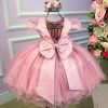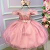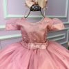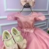 Confeccionado em tecido misto possui forro em poliéster e algodão para não incomodar a criança e proporcionando um caimento incrível e sofisticado, possui gola redonda, comprimento médio, mangas curtas, possui elástico nas costas para melhor ajuste, acabamento com lindo laço na parte posterior do vestido completa o look dos sonhos!