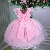 Confeccionado em tecido misto possui forro em poliéster e algodão para não incomodar a criança e proporcionando um caimento incrível e sofisticado, possui gola redonda, comprimento médio, mangas curtas, possui elástico nas costas para melhor ajuste, acabamento com lindo laço na parte posterior do vestido completa o look dos sonhos!
