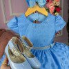 Vestido Menina Bonita Azul Renda Bolinhas