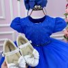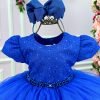 Confeccionado em tecido misto possui forro em poliéster e algodão para não incomodar a criança e proporcionando um caimento incrível e sofisticado, possui gola redonda, comprimento médio, mangas curtas, possui elástico nas costas para melhor ajuste, e acabamento com lindo laço na parte posterior do vestido completa o look dos sonhos!