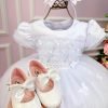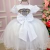 Vestido Menina Bonita Branco Borboletas Peito Tule