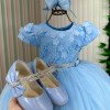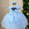 Confeccionado em tecido misto possui forro em poliéster e algodão para não incomodar a criança e proporcionando um caimento incrível e sofisticado, possui gola redonda, comprimento médio, mangas curtas, possui elástico nas costas para melhor ajuste, acabamento com lindo laço na parte posterior do vestido completa o look dos sonhos!