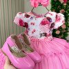 TECIDO TAFETA TULEAPLIQUES EM PEROLAS NA PARTE DO PEITO Confeccionado em tecido misto possui forro em poliéster e algodão para não incomodar a criança e proporcionando um caimento incrível e sofisticado, possui gola redonda, comprimento médio, mangas curtas, possui elástico nas costas para melhor ajuste, acabamento com lindo laço na parte posterior do vestido completa o look dos sonho FLOR, FLORES, JARDIM ENCANTADO, FLORESTA ENCANTADA, BOSQUE ENCANTADO * Medidas podem variar em até 4cm. * Caso queira o vestido mais armado, recomendamos o uso do saiote ou anágua de armação, disponível no nosso site na categoria acessórios.* Tiara vendida separadamente, disponível em nosso site na categoria acessórios. * Calçados vendido separadamente, disponível em nosso site na categoria calçados. * LEMBRANDO QUE PODERA HAVER VARIAÇÃO DE TONALIDADE DO PRODUTO DEPENDENDO DA TELA DO SEU DISPOSITIVO