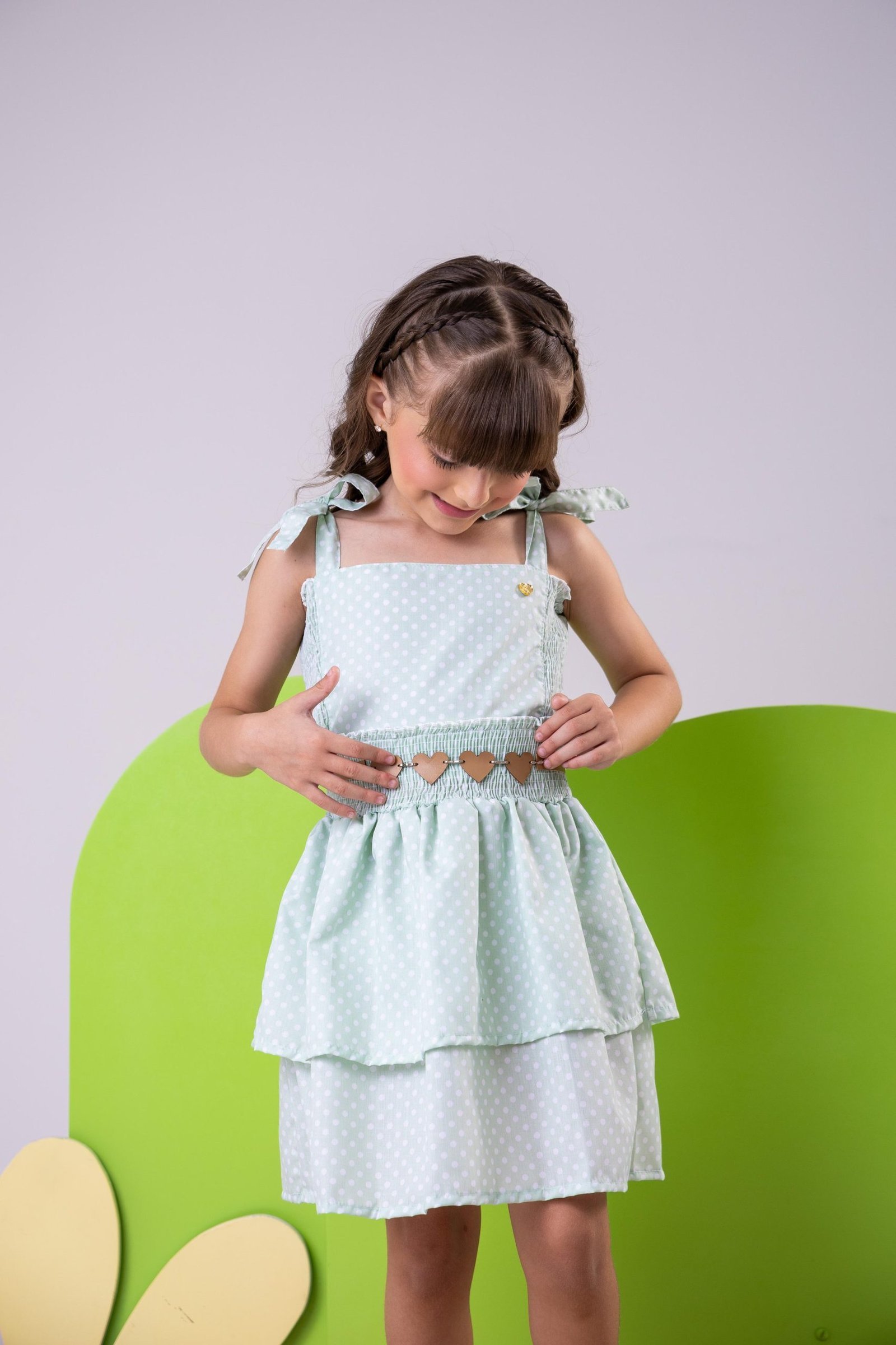 Confeccionado em tecido misto possui forro em poliéster e algodão para não incomodar a criança e proporcionando um caimento incrível e sofisticado, possui gola redonda, comprimento médio, mangas curtas, possui elástico nas costas para melhor ajuste, e acabamento com lindo laço na parte posterior do vestido completa o look dos sonhos!