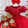 TECIDO TAFETA Confeccionado em tecido misto possui forro em poliéster e algodão para não incomodar a criança e proporcionando um caimento incrível e sofisticado, possui gola redonda, comprimento médio, mangas curtas, possui elástico nas costas para melhor ajuste, acabamento com lindo laço na parte posterior do vestido completa o look dos sonhos! * Medidas podem variar em até 4cm * Caso queira o vestido mais armado, recomendamos o uso do saiote ou anágua de armação, disponível no nosso site na categoria acessórios. * Tiara vendida separadamente, disponível em nosso site na categoria acessórios. * Calçados vendido separadamente, disponível em nosso site na categoria calçados. * LEMBRANDO QUE PODERA HAVER VARIAÇÃO DE TONALIDADE DO PRODUTO DEPENDENDO DA TELA DO SEU DISPOSITIVO