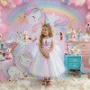 Vestido Infantil Unicórnio Apresentamos o Vestido Infantil Unicórnio, uma peça encantadora e delicada, perfeita para transformar qualquer momento especial em um verdadeiro conto de fadas. Um modelo que combina leveza, doçura e um visual mágico que conquista à primeira vista. Ocasiões Indicadas Ideal para aniversários, festas temáticas, ensaios fotográficos, eventos especiais, festas infantis e momentos especiais. Detalhes do Vestido Confeccionado em tecido leve e confortável, proporcionando excelente caimento e liberdade de movimento. • Parte superior branca com estampa de unicórnio• Mangas em tule com acabamento delicado• Cintura marcada com faixa rosa• Saia em camadas de tule com efeito volumoso e encantador• Laço posterior que valoriza o acabamento Composição:• Tecido 100% poliéster• Forro 100% poliéster Informações Importantes • As medidas podem variar em até 2 cm• Consulte sempre a tabela de medidas antes da compra• Para mais volume, recomendamos o uso de saiote (vendido separadamente)• Acessórios não acompanham o produto• As cores podem sofrer variação de tonalidade conforme a tela do dispositivo