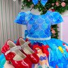 Confeccionado em tecido misto possui forro em poliéster e algodão para não incomodar a criança e proporcionando um caimento incrível e sofisticado, possui gola redonda, comprimento médio, mangas curtas, possui elástico nas costas para melhor ajuste, acabamento com lindo laço na parte posterior do vestido completa o look dos sonhos!