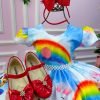 Confeccionado em tecido misto possui forro em poliéster e algodão para não incomodar a criança e proporcionando um caimento incrível e sofisticado, possui gola redonda, comprimento médio, mangas curtas, possui elástico nas costas para melhor ajuste, acabamento com lindo laço na parte posterior do vestido completa o look dos sonhos!