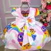 Confeccionado em tecido misto possui forro em poliéster e algodão para não incomodar a criança e proporcionando um caimento incrível e sofisticado, possui gola redonda, comprimento médio, mangas curtas, possui elástico nas costas para melhor ajuste, acabamento com lindo laço na parte posterior do vestido completa o look dos sonhos!