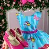 Confeccionado em tecido misto possui forro em poliéster e algodão para não incomodar a criança e proporcionando um caimento incrível e sofisticado, possui gola redonda, comprimento médio, mangas curtas, contém, também, elástico nas costas para melhor ajuste, acabamento com lindo laço na parte posterior do vestido completa o look dos sonhos!