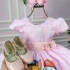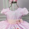 Confeccionado em tecido misto possui forro em poliéster e algodão para não incomodar a criança e proporcionando um caimento incrível e sofisticado, possui gola redonda, comprimento médio, mangas curtas, contém, também, elástico nas costas para melhor ajuste, acabamento com lindo laço na parte posterior do vestido completa o look dos sonhos!