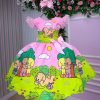 Confeccionado em tecido misto possui forro em poliéster e algodão para não incomodar a criança e proporcionando um caimento incrível e sofisticado, possui comprimento médio,sem mangas,possui elástico nas costas para melhor ajuste, Laço grande nas costas que completa o look dos sonhos!