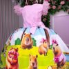 Confeccionado em tecido misto possui forro em poliéster e algodão para não incomodar a criança e proporcionando um caimento incrível e sofisticado, possui comprimento médio,sem mangas,possui elástico nas costas para melhor ajuste, Laço grande nas costas que completa o look dos sonhos!
