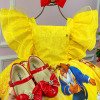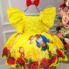 Confeccionado em tecido misto possui forro em poliéster e algodão para não incomodar a criança e proporcionando um caimento incrível e sofisticado, possui gola redonda, comprimento médio, mangas curtas, possui elástico nas costas para melhor ajuste, acabamento com lindo laço na parte posterior do vestido completa o look dos sonhos!