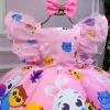 TECIDO 100% POLIÉSTER Confeccionado em tecido misto possui forro em poliéster e algodão para não incomodar a criança e proporcionando um caimento incrível e sofisticado, possui gola redonda, comprimento médio, mangas curtas, contém, também, elástico nas costas para melhor ajuste, acabamento com lindo laço na parte posterior do vestido completa o look dos sonhos! * Medidas podem variar em até 4cm. * Caso queira o vestido mais armado, recomendamos o uso do saiote ou anágua de armação, disponível no nosso site na categoria acessórios. * Tiara vendida separadamente, disponível em nosso site na categoria acessórios. * Calçados vendido separadamente, disponível em nosso site na categoria calçados. * LEMBRANDO QUE PODERA HAVER VARIAÇÃO DE TONALIDADE DO PRODUTO DEPENDENDO DA TELA DO SEU DISPOSITIVO