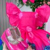 Confeccionado em tecido misto possui forro em poliéster e algodão para não incomodar a criança e proporcionando um caimento incrível e sofisticado, possui gola redonda, comprimento médio, mangas curtas, possui elástico nas costas para melhor ajuste, acabamento com lindo laço na parte posterior do vestido completa o look dos sonhos!