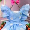Confeccionado em tecido misto possui forro em poliéster e algodão para não incomodar a criança e proporcionando um caimento incrível e sofisticado, possui gola redonda, comprimento médio, mangas curtas, contém, também, elástico nas costas para melhor ajuste, acabamento com lindo laço na parte posterior do vestido completa o look dos sonhos!