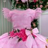 Vestido Tematicos Luxo Princesas Disney Rosa Manga Tule
