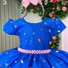 Confeccionado em tecido misto possui forro em poliéster e algodão para não incomodar a criança e proporcionando um caimento incrível e sofisticado, possui gola redonda, comprimento médio, mangas curtas, contém, também, elástico nas costas para melhor ajuste, acabamento com lindo laço na parte posterior do vestido completa o look dos sonhos!