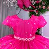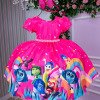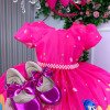 Confeccionado em tecido misto possui forro em poliéster e algodão para não incomodar a criança e proporcionando um caimento incrível e sofisticado, possui gola redonda, comprimento médio, mangas curtas, contém, também, elástico nas costas para melhor ajuste, acabamento com lindo laço na parte posterior do vestido completa o look dos sonhos!