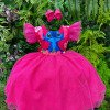 Vestido Temático Stitch com LED Um modelo encantador que une fofura e diversão! O vestido traz estampa exclusiva do Stitch no busto, com fundo delicado Floral. As mangas em camadas dão um charme extra e a saia rodada com uma camada de tule com glitter, deixando o visual ainda mais mágico. O grande diferencial são as luzes de LED embutidas na saia, que brilham e tornam a peça ainda mais especial para festas, apresentações e momentos inesquecíveis. Atenção: Esse modelo não pode ser lavado normalmente, apenas lavagem a seco para preservar o sistema de LED. No interruptor do LED, vem uma tag branca de segurança, que impede o acionamento durante o transporte. Para usar, basta retirá-la. Tecido tafeta e tule glitter 100% poliester Informações Importantes As medidas podem variar em até 2cm. Recomendamos sempre consultar a tabela de medidas antes da compra para evitar erros. Para um volume extra, indicamos o uso de saiote de armação, vendido separadamente na categoria Acessórios. Tiara e outros acessórios não acompanham o produto, mas estão disponíveis em nosso site. Calçado vendido separadamente, disponível na categoria Calçados. As cores do produto podem sofrer variações de tonalidade conforme a configuração da tela do seu dispositivo.