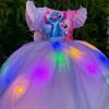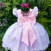 Confeccionado em tecido misto possui forro em poliéster e algodão para não incomodar a criança e proporcionando um caimento incrível e sofisticado, possui gola redonda, comprimento médio, mangas curtas, contém, também, elástico nas costas para melhor ajuste, acabamento com lindo laço na parte posterior do vestido completa o look dos sonhos!