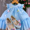 Vestido Vila Lele Jardim das Borboletas Baby Liz Azul Bebe