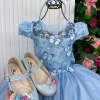 Vestido Vila Lele Longo Jardim Encantado Borboletas Azul Beb