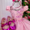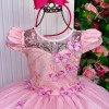 Vestido Vila Lele Longo Jardim Encantado Borboletas Rosa Beb