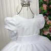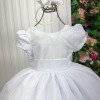 TECIDO: 100% Poliester vestido longo infantil sofisticado, ideal para ocasiões especiais como casamentos, aniversários e eventos formais. Confeccionado com tecido 100% Poliéster de alta qualidade, o modelo possui caimento impecável e acabamento refinado, garantindo conforto e charme em cada detalhe. Destaque especial: Personalize o look com nosso exclusivo laço removível na cintura! São várias opções de cores para você escolher, combinando o vestido com o tema da festa ou com o estilo da sua pequena cliente. Confeccionado em tecido misto possui forro em poliéster e algodão para não incomodar a criança e proporcionando um caimento incrível e sofisticado, possui gola redonda, comprimento médio, mangas curtas,  contém, também, elástico nas costas para melhor ajuste, acabamento com lindo laço na parte posterior do vestido completa o look dos sonhos!   * Medidas podem variar em até 2cm. * Caso queira o vestido mais armado, recomendamos o uso do saiote ou anágua de armação, disponível no nosso site na categoria acessórios. * Tiara vendida separadamente, disponível em nosso site na categoria acessórios. * Calçados vendido separadamente, disponível em nosso site na categoria calçados. * LEMBRANDO QUE PODERA HAVER VARIAÇÃO DE TONALIDADE DO PRODUTO DEPENDENDO DA TELA DO SEU DISPOSITIVO