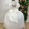 TECIDO: 100% Poliester vestido longo infantil sofisticado, ideal para ocasiões especiais como casamentos, aniversários e eventos formais. Confeccionado com tecido 100% Poliéster de alta qualidade, o modelo possui caimento impecável e acabamento refinado, garantindo conforto e charme em cada detalhe. Destaque especial: Personalize o look com nosso exclusivo laço removível na cintura! São várias opções de cores para você escolher, combinando o vestido com o tema da festa ou com o estilo da sua pequena cliente. Confeccionado em tecido misto possui forro em poliéster e algodão para não incomodar a criança e proporcionando um caimento incrível e sofisticado, possui gola redonda, comprimento médio, mangas curtas, contém, também, elástico nas costas para melhor ajuste, acabamento com lindo laço na parte posterior do vestido completa o look dos sonhos! * Medidas podem variar em até 4cm. * Caso queira o vestido mais armado, recomendamos o uso do saiote ou anágua de armação, disponível no nosso site na categoria acessórios. * Tiara vendida separadamente, disponível em nosso site na categoria acessórios. * Calçados vendido separadamente, disponível em nosso site na categoria calçados. * LEMBRANDO QUE PODERA HAVER VARIAÇÃO DE TONALIDADE DO PRODUTO DEPENDENDO DA TELA DO SEU DISPOSITIVO