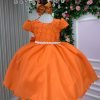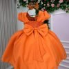 Confeccionado em tecido misto possui forro em poliéster e algodão para não incomodar a criança e proporcionando um caimento incrível e sofisticado, possui gola redonda, comprimento médio, mangas curtas,  contém, também, elástico nas costas para melhor ajuste, acabamento com lindo laço na parte posterior do vestido completa o look dos sonhos!